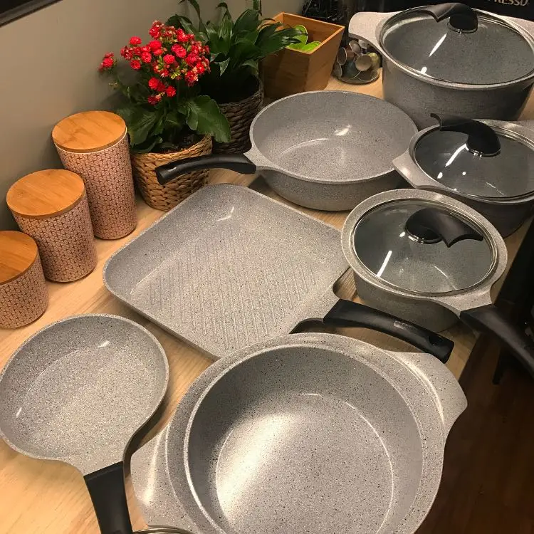 - الجرانيت والسيراميك: تتميز بأسطح غير لاصقة وصحية مصنوعة من مواد طبيعية، خالية تماماً من المواد الكيميائية الضارة مثل PFOA و PTFE. مثالية للطهي بقليل من الزيت، سهلة التنظيف، وتوفر توزيعاً متساوياً وسريعاً للحرارة.